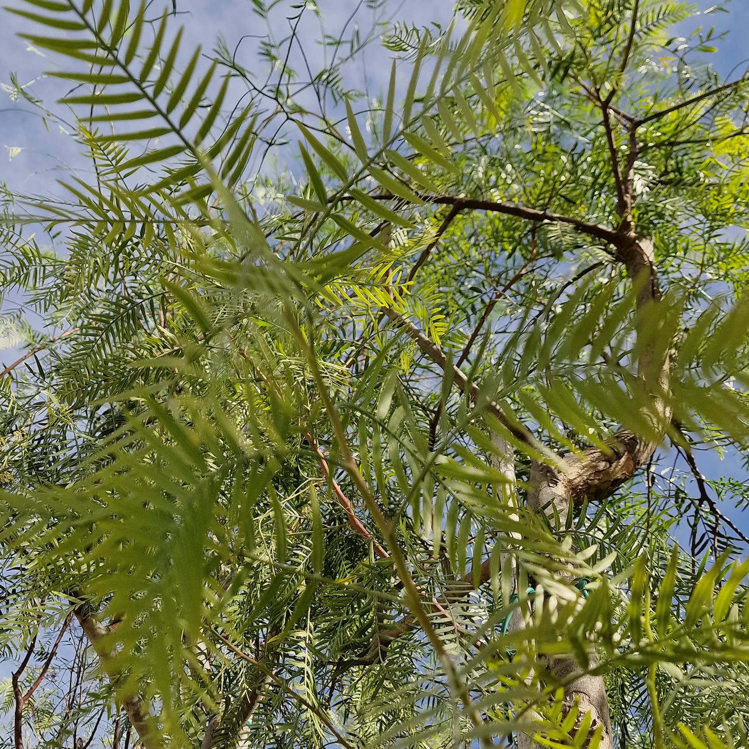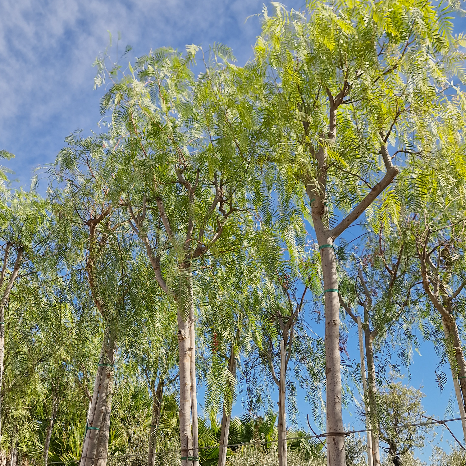 Le Schinus molle développe de fines feuilles vert tendre qui bougent au moindre souffle de vent. Sa silhouette souple et aérienne crée une atmosphère apaisante, idéale pour les jardins contemporains comme pour les jardins plus naturels. Une fois installé, il devient rapidement un arbre de caractère, très décoratif.