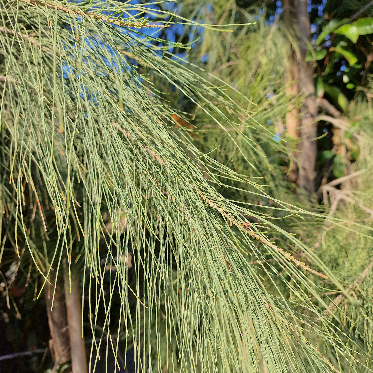Le filao se distingue par son port élancé et ses rameaux fins rappelant les aiguilles de pin. Sa croissance rapide et son adaptation remarquable aux conditions difficiles en font un arbre idéal pour les jardins du Sud. Il supporte les embruns, la sécheresse et les vents forts, tout en conservant un feuillage vert doux toute l’année.