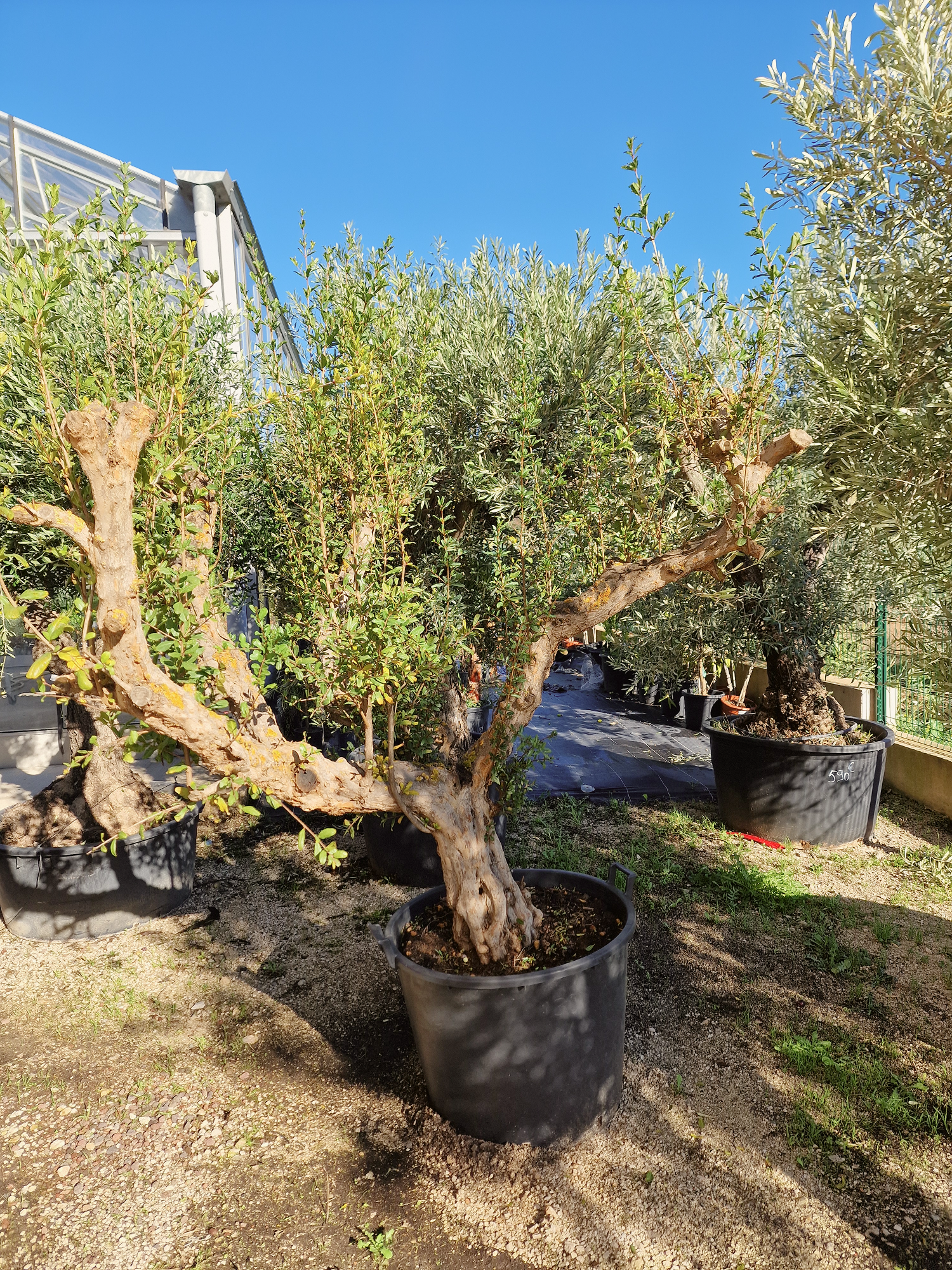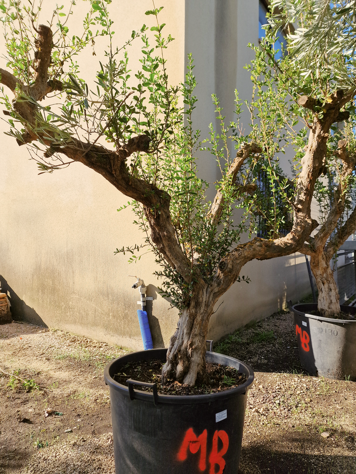 Ce grenadier (Punica granatum) est un sujet déjà bien formé, au tronc puissant et à la ramure largement ouverte. Avec une hauteur comprise entre 160 et 180 cm et un tronc de 50 à 60 cm de circonférence, il apporte immédiatement du caractère et une vraie présence méditerranéenne dans votre jardin.