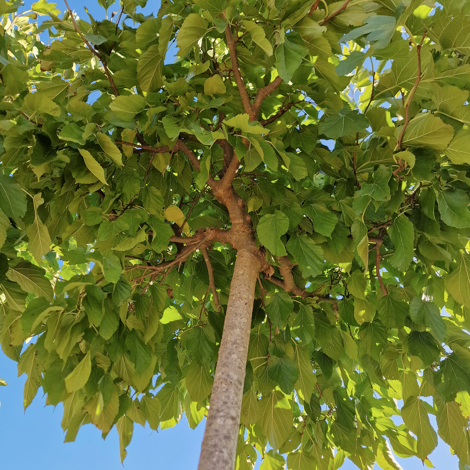 Grâce à sa variété stérile, le mûrier platane Morus Fruitless ne produit pas de fruits et reste propre tout au long de l’année. Sa tige haute et sa couronne bien formée en font un arbre parfait pour structurer un jardin, border une allée ou ombrager un espace détente. Son feuillage large et caduc prend une belle teinte dorée à l’automne.