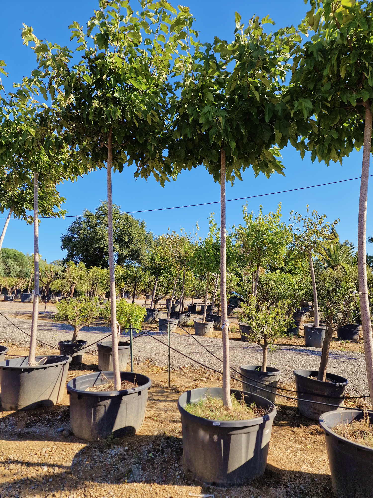 Le mûrier platane stérile tige haute (Morus Fruitless) est un arbre d’ombrage très apprécié pour sa ramure élégante et son feuillage dense. Sans fruits, il ne tache pas les terrasses ni les allées, tout en apportant une ombre généreuse et fraîche. Idéal pour les jardins du Sud, il offre un port arrondi et une croissance rapide.
