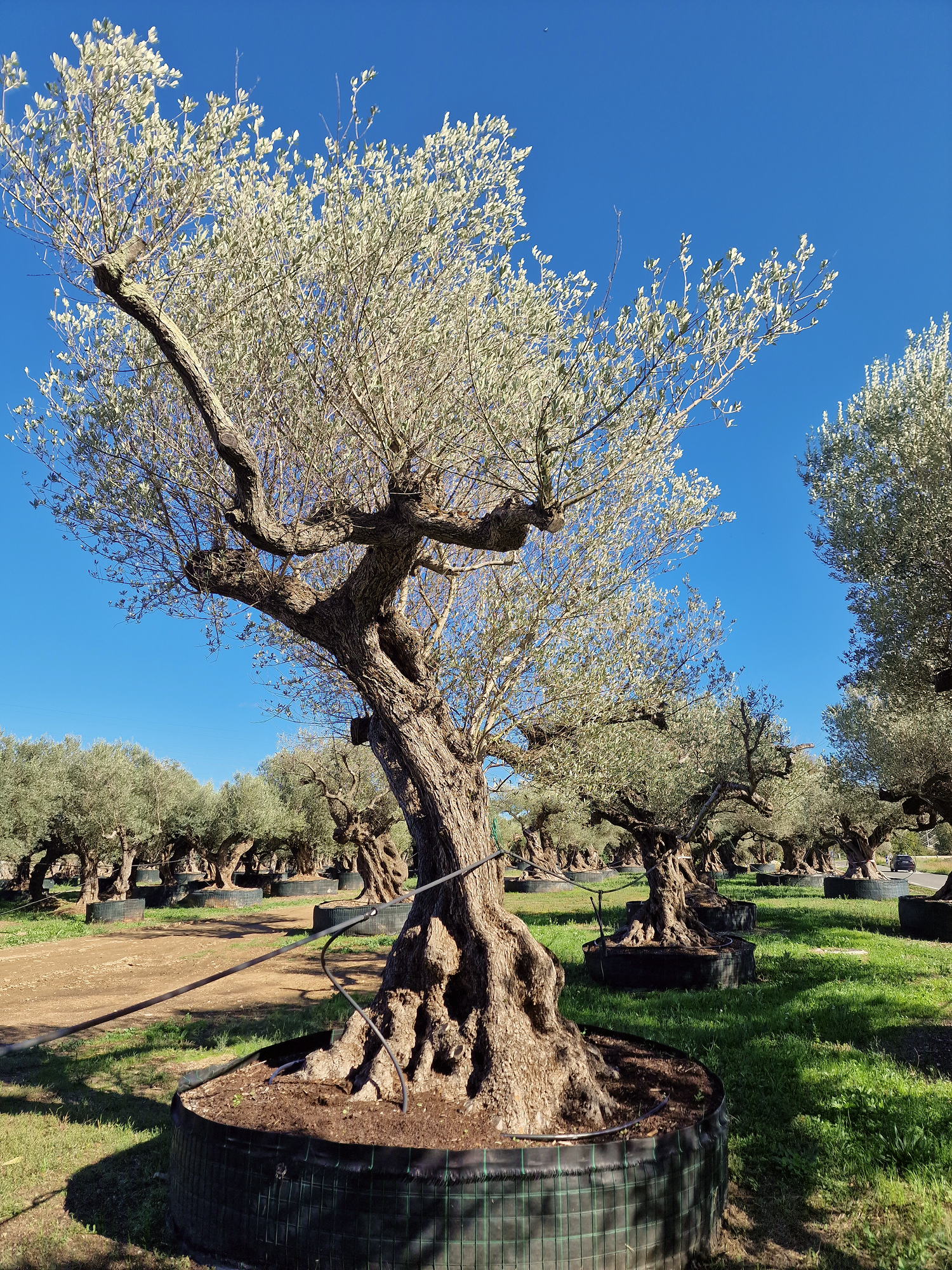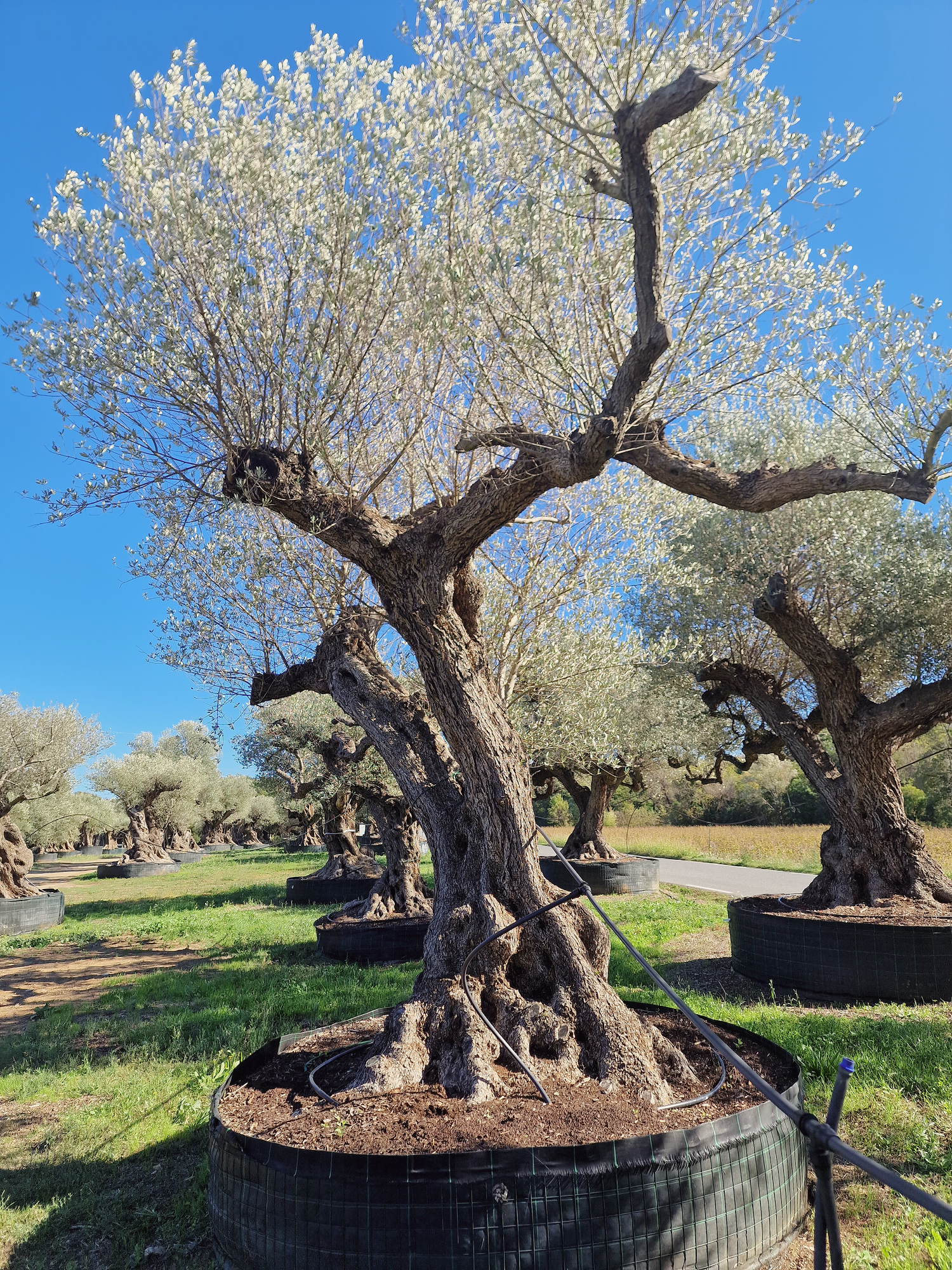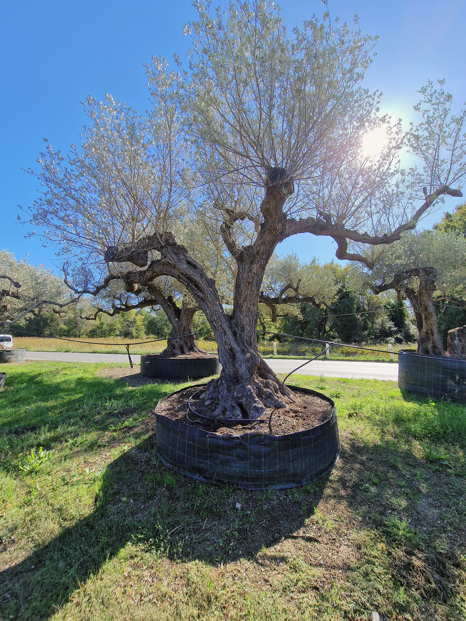 Issu d’une culture soignée, cet olivier présente une belle densité de feuillage et un tronc noueux caractéristique des vieux sujets. Chaque arbre est unique : ses courbes et reliefs racontent l’histoire du temps. Grâce à sa taille de 4 mètres et à son port harmonieux, il s’intègre aussi bien dans les jardins contemporains que dans les aménagements plus naturels.