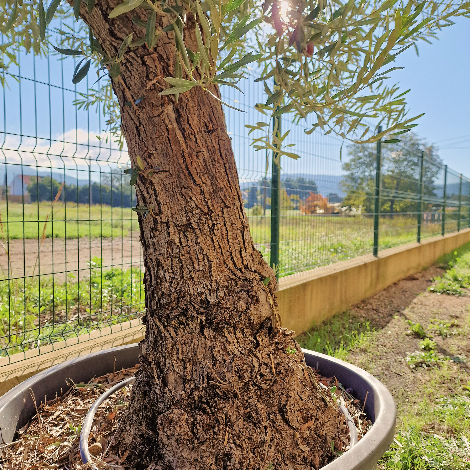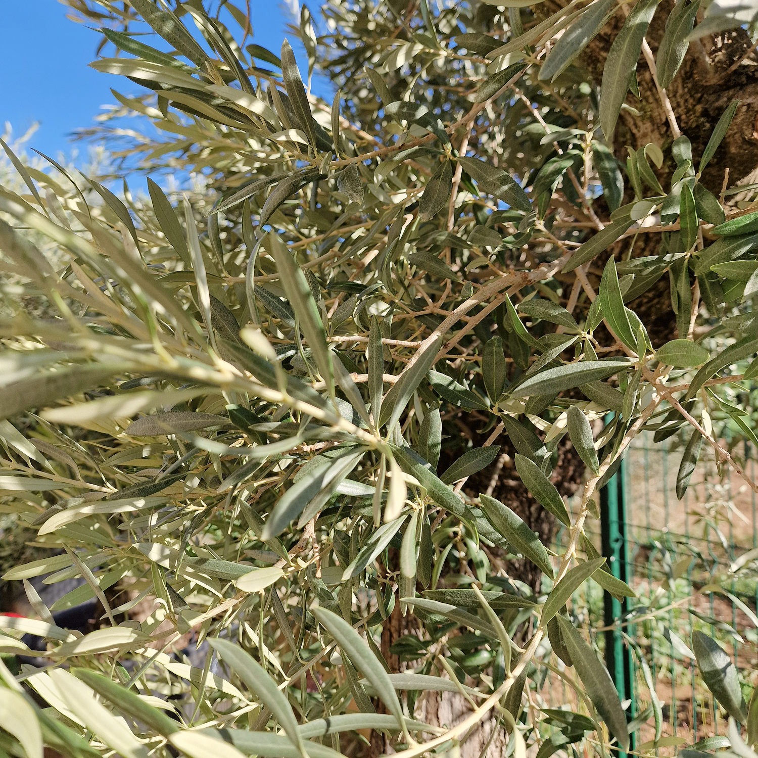 La variété Gordal est reconnue pour ses fruits charnus. Sur cet arbre, les feuilles fines et argentées sont denses, et sa charpente est déjà très développée, offrant une silhouette élégante et harmonieuse. Le tronc, marqué par les années, apporte un charme authentique parfaitement visible sur les photos.