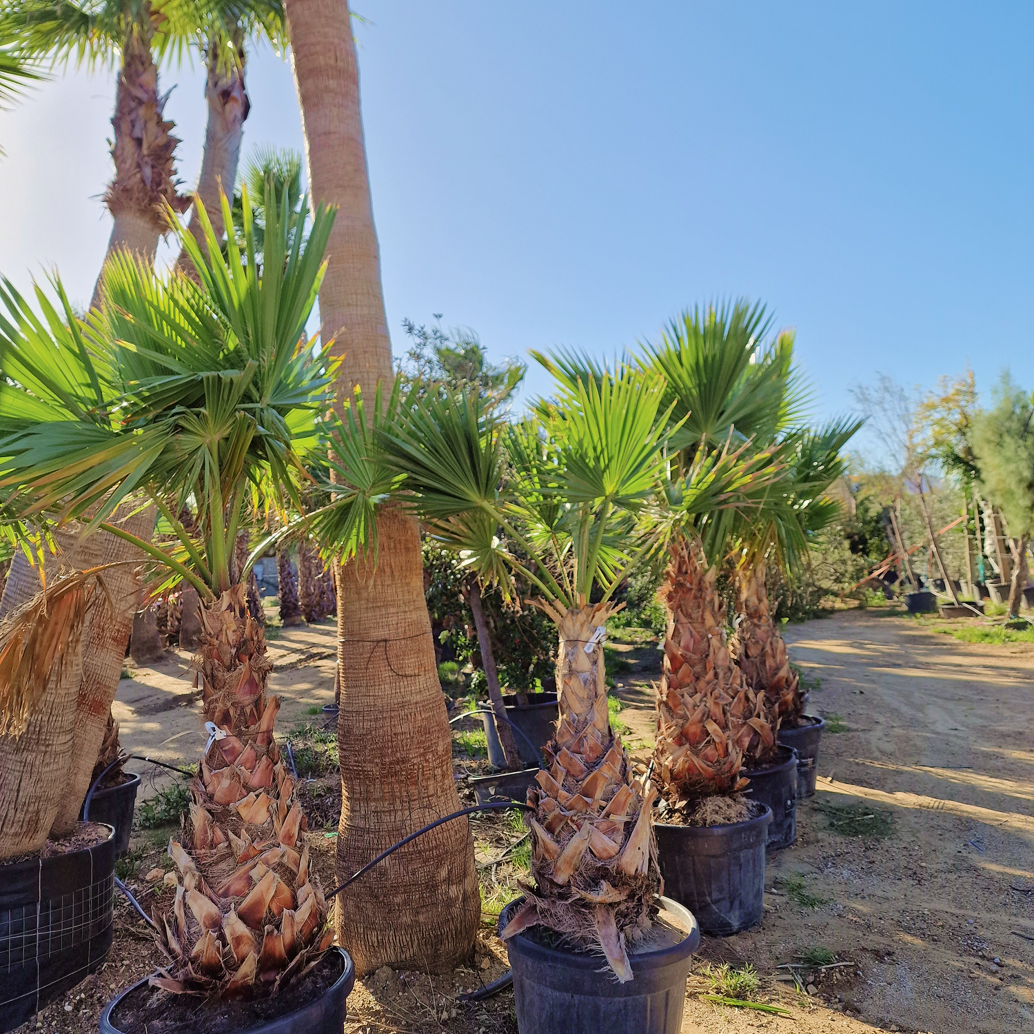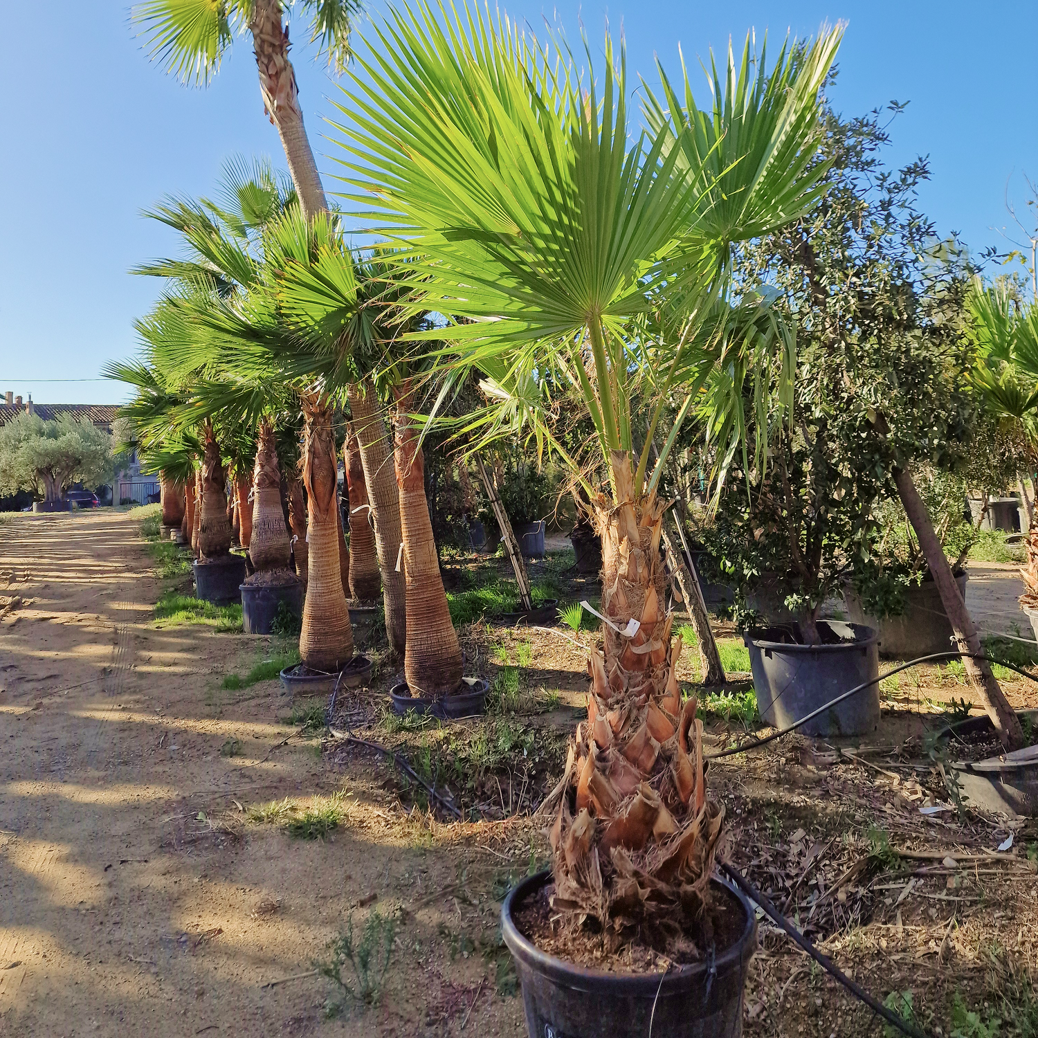 Le Washingtonia robusta est un palmier emblématique des jardins méditerranéens. Avec un stipe d’environ 100 cm, ce sujet présente déjà une belle base formée et une couronne de palmes généreuse. Idéal pour les jardins, terrasses ou abords de piscine, il offre un effet exotique immédiat sans nécessiter un espace immense.