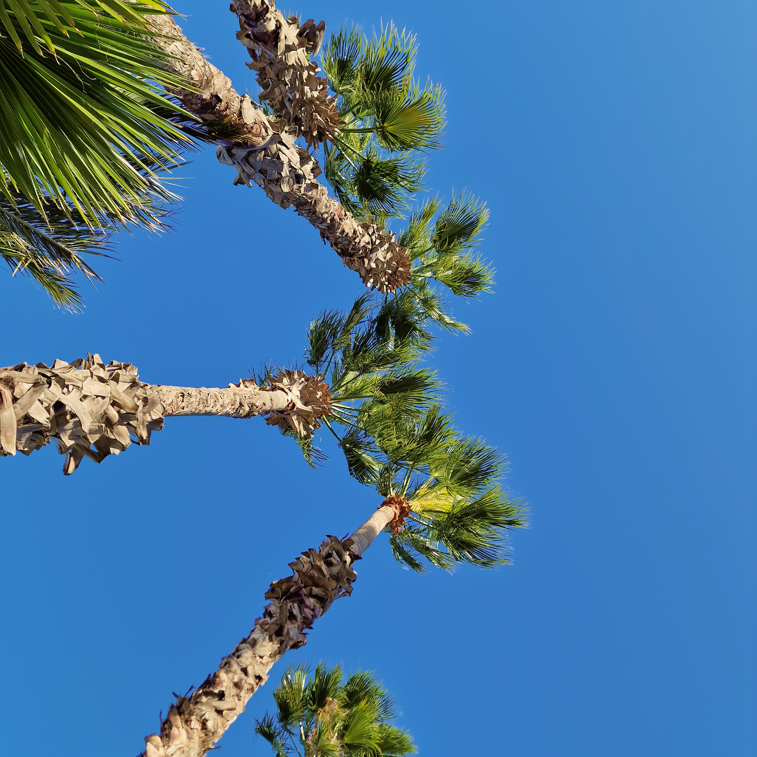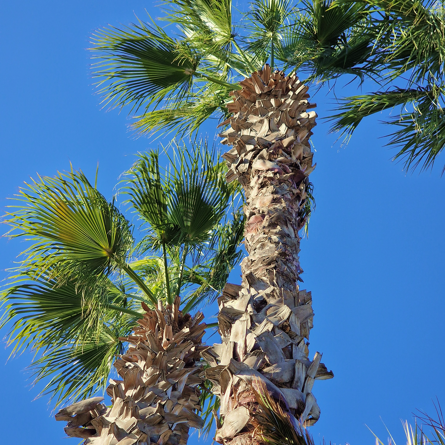 Avec son tronc élancé et très régulier, ce washingtonia crée un effet architectural saisissant. Sa couronne de palmes larges et lumineuses oscille au vent et donne une impression de hauteur et de légèreté. Ces sujets adultes offrent un rendu visuel rare, impossible à obtenir avec des jeunes palmiers : hauteur, présence, ombre et élégance.