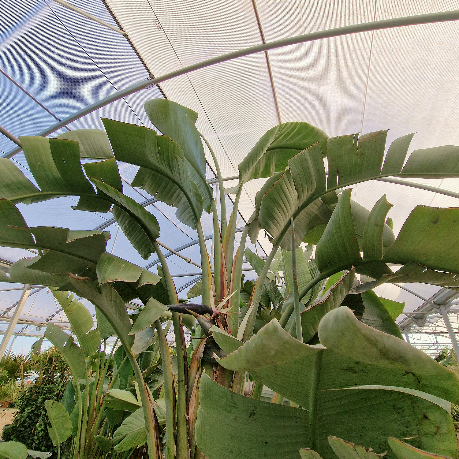 Ses grandes feuilles épaisses et dressées rappellent celles du bananier, avec un port puissant et structuré. Ce Strelitzia augusta apporte volume et verticalité, tout en offrant une texture végétale dense. En climat doux, il devient l’une des plantes les plus impressionnantes du jardin.