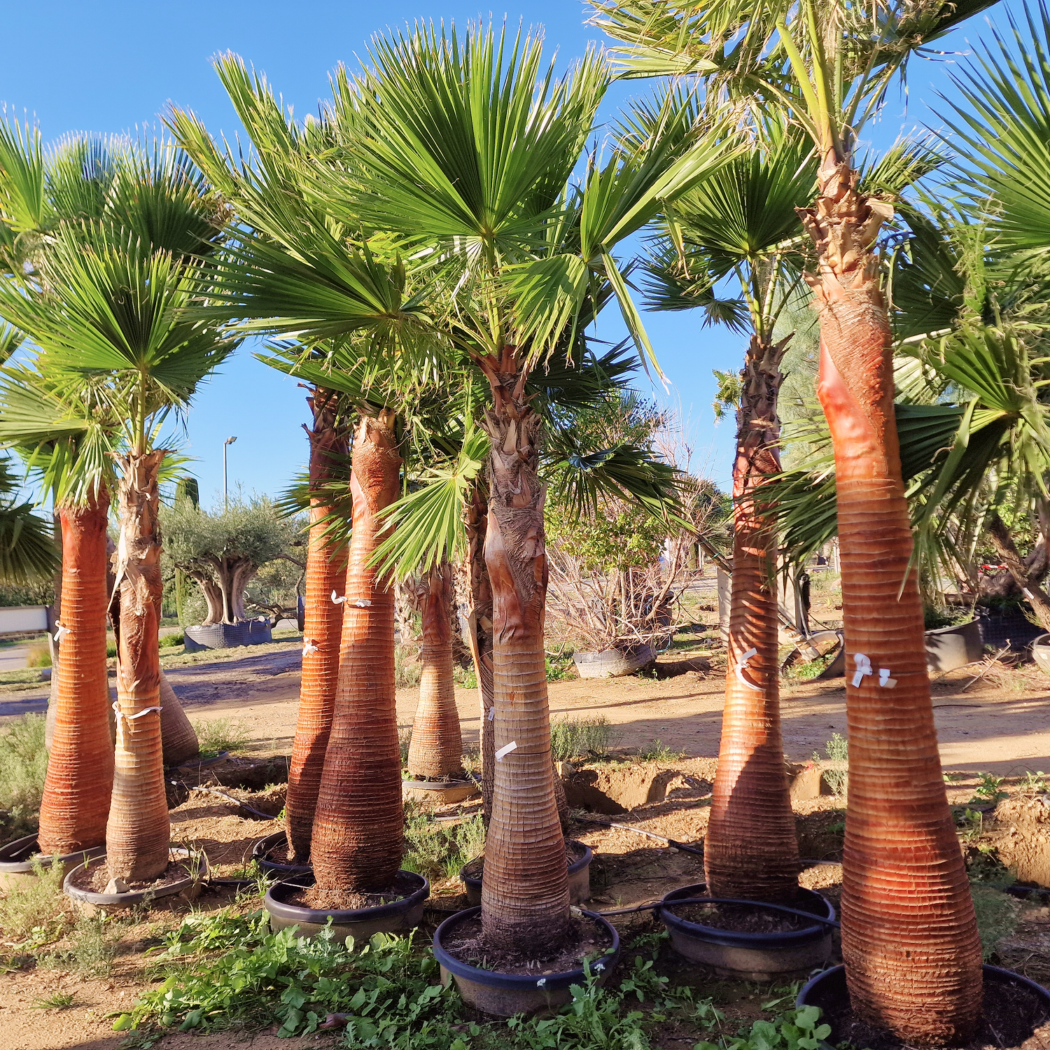 Ce Washingtonia robusta nettoyé présente un tronc dégagé de 190 cm, offrant une silhouette déjà adulte et très élégante. Son port élancé et ses larges palmes en éventail en font un palmier idéal pour créer une ambiance tropicale ou méditerranéenne dans un jardin, autour d’une piscine ou en bord d’allée.