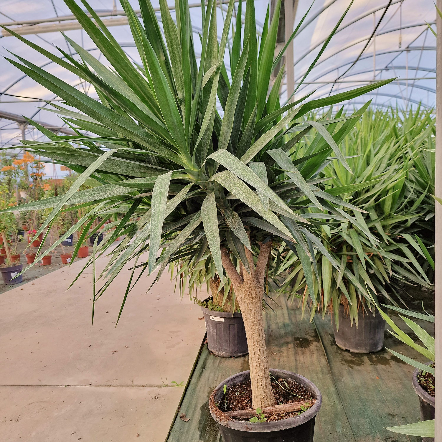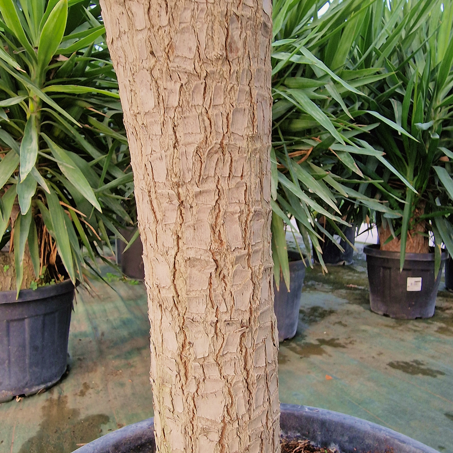Le Yucca elephantipes, aussi appelé Yucca géant ou Yucca pied d’éléphant, est une plante ornementale très appréciée pour son tronc massif et ses longues feuilles souples d’un vert brillant. Avec ses 175 centimètres de hauteur, ce sujet déjà bien développé apporte immédiatement une touche exotique et moderne à votre jardin ou terrasse.